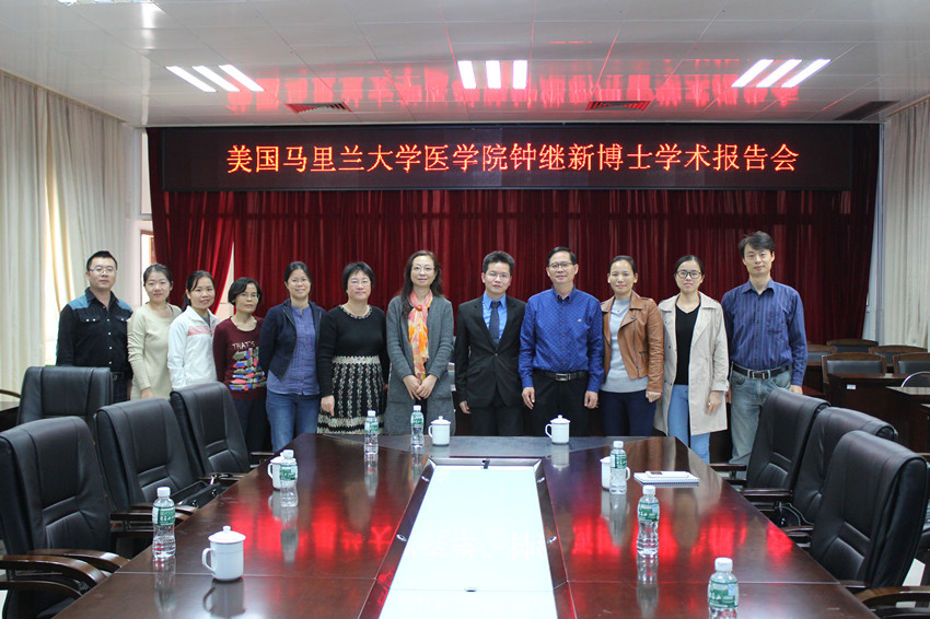 (钟继新博士与医学检验学院和省医学分子诊断重点实验室部分学术骨干合影)